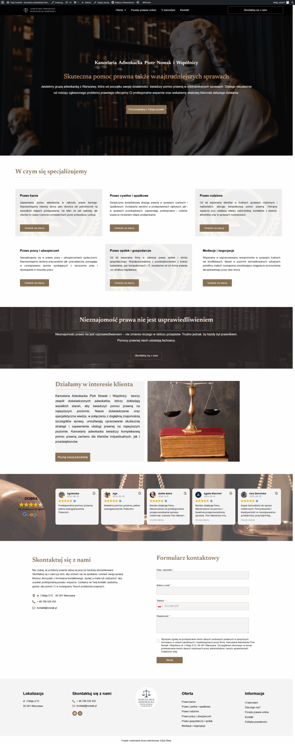 Projekt responsywnej strony internetowej dla kancelarii prawniczej. Strona łączy profesjonalny wizerunek z nowoczesnym designem i prostą nawigacją. Celem projektu było zwiększenie zaufania klientów i ułatwienie kontaktu z prawnikami.